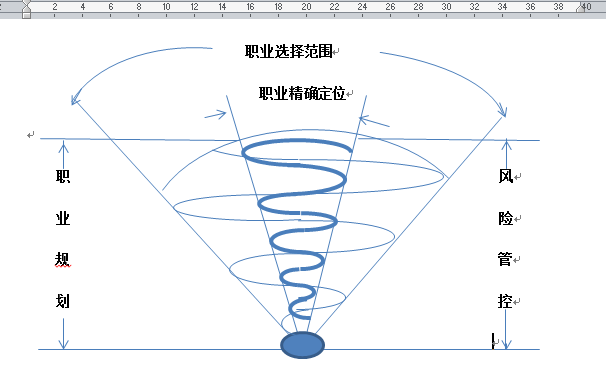 靠内部小扇型的两条直线与弧面相交的两点位为精确定位的职业范围,中间的小S型粗弧线同样也代表了职业选择路线和各种风险,但相对而言比大弧线内的曲线范围要小很多,这其实是代表了一种对风险的合理控制范围。